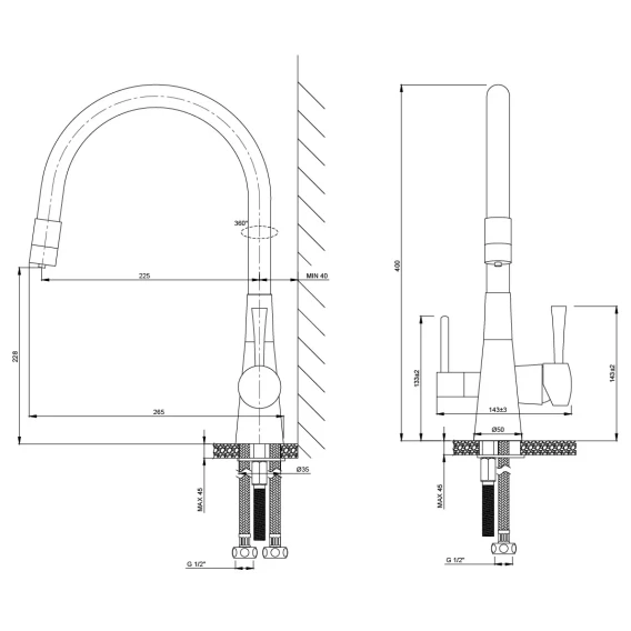 Длина излива 22.5 см