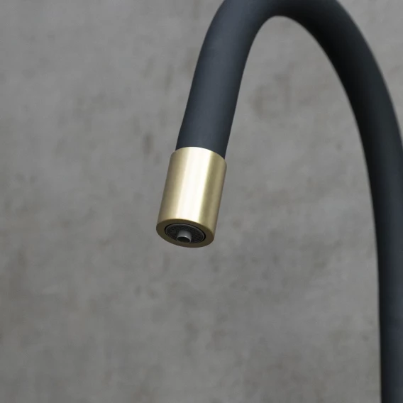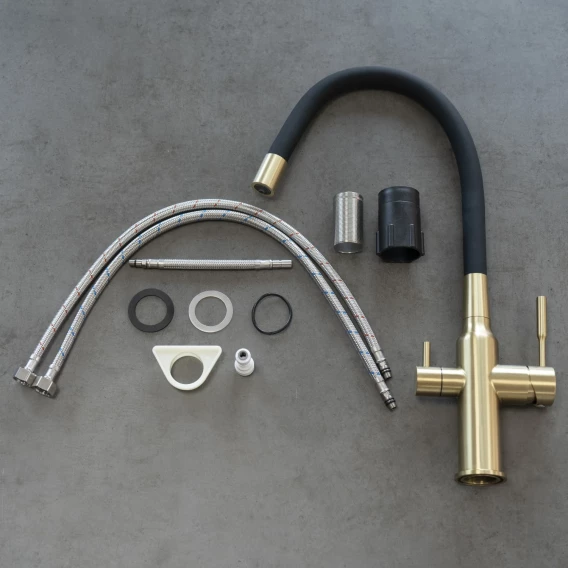 Смеситель для кухни Lemark Expert LM5083LGN-Black с подключением к фильтру, гибким изливом, светлое золото/черный