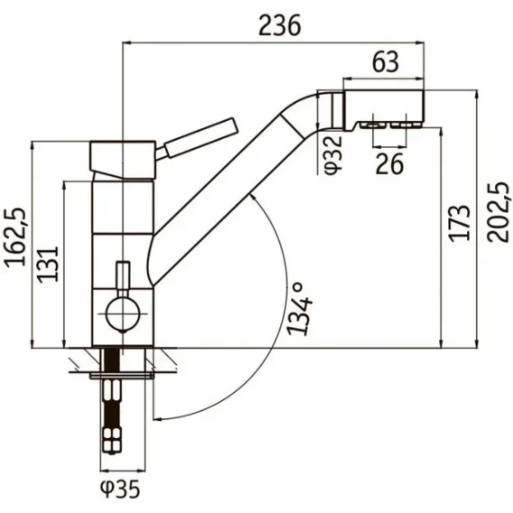 Высота излива 17.3 см