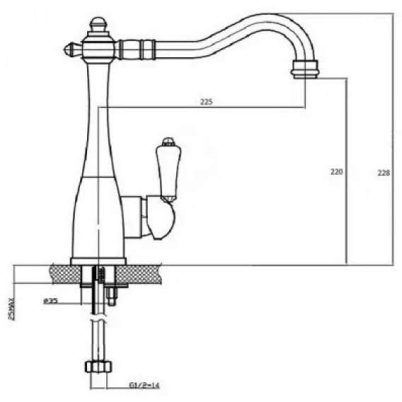 Длина излива 22.5 см