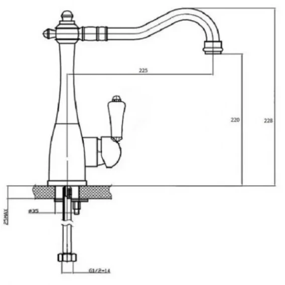 Длина излива 22.5 см