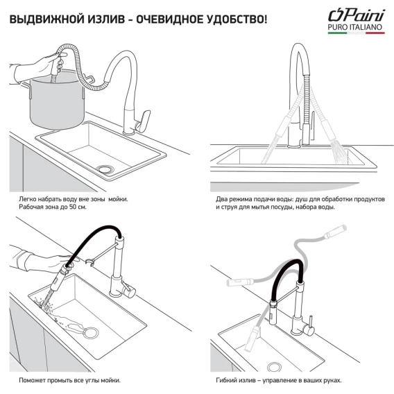 Смеситель для кухни Paini Cox Granite Truffle HD72566CR1KM