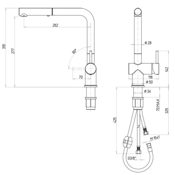 Высота излива 27.7 см