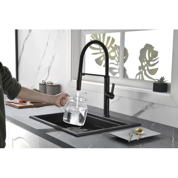 Смеситель для кухни Paulmark Barrel Ba214029-AN с гибким изливом, антрацит