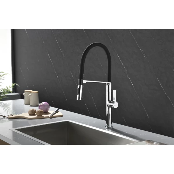 Смеситель для кухни Paulmark Barrel Ba214029-CR с гибким изливом, хром