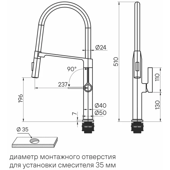 Длина излива 23.7 см