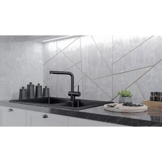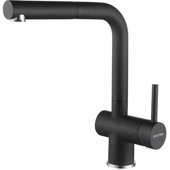 Смеситель для кухни Paulmark Dosse Do214418-BLM с выдвижным изливом, черный металлик