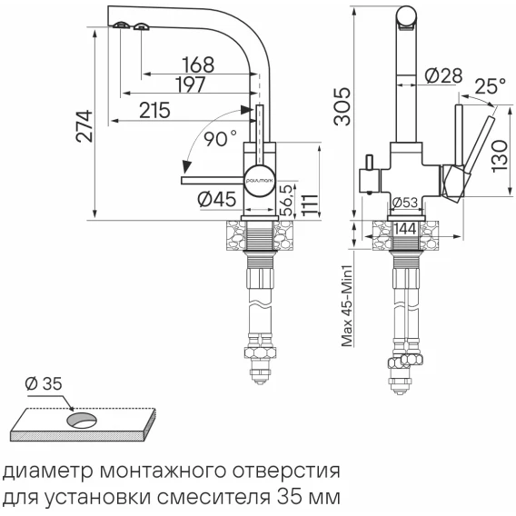 Смеситель для кухни Paulmark Essen Es213011-MG с подключением к фильтру, серый матовый