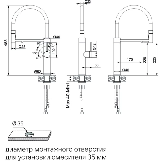 Крепление, Аэратор, Гибкая подводка, Душевая лейка