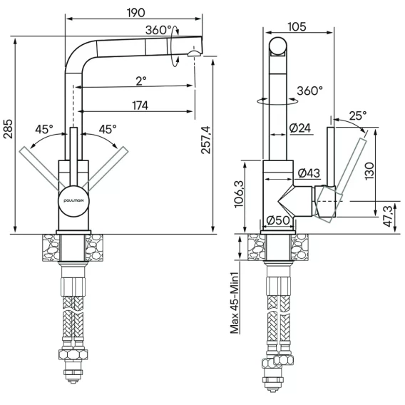 Высота излива 25.74 см