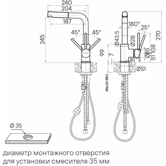 Высота излива 24.5 см