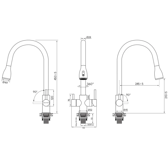 Крепление, Аэратор, Гибкая подводка, Душевой шланг, Душевая лейка