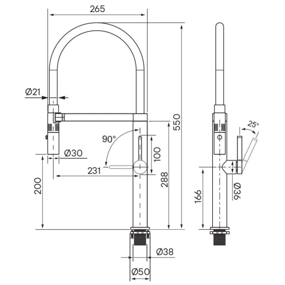 Высота излива 20 см