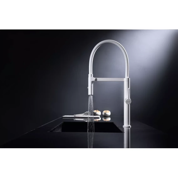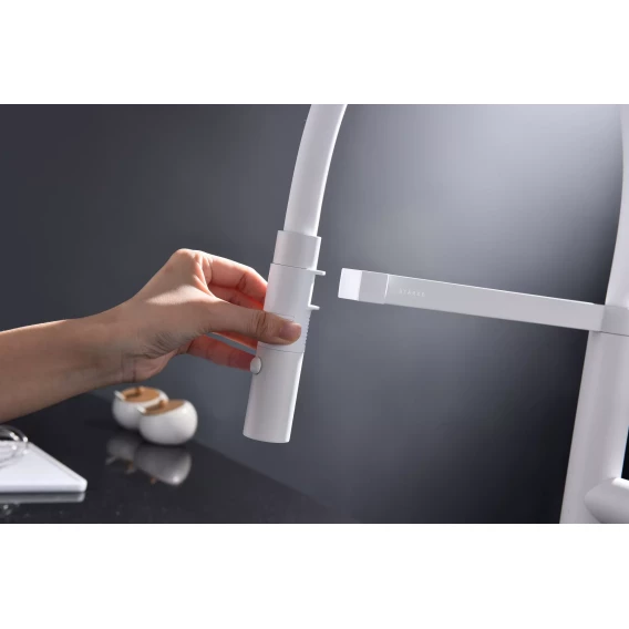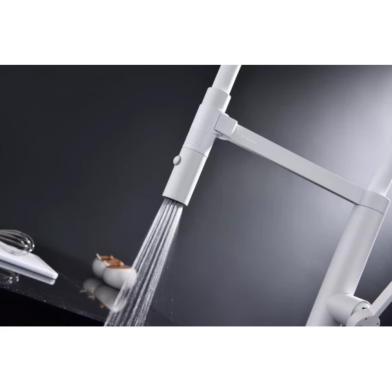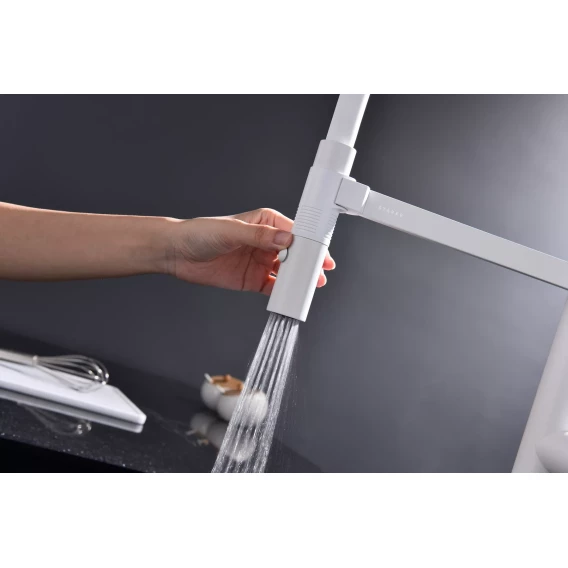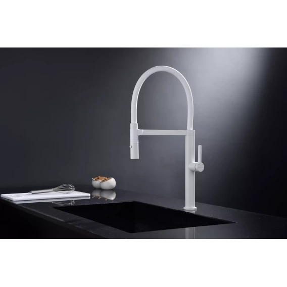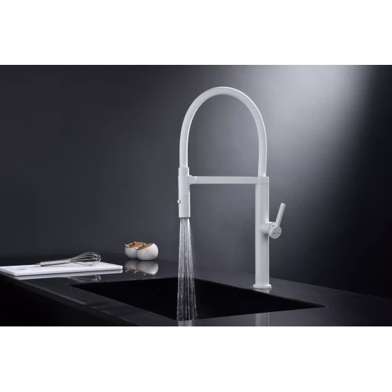 Смеситель для кухни Paulmark Leader Le214101-WH с гибким изливом, белый матовый