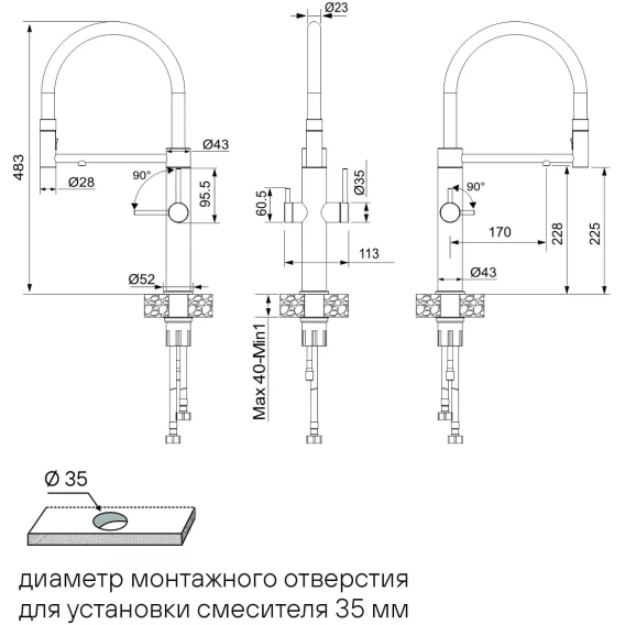 Высота излива 22.5 см