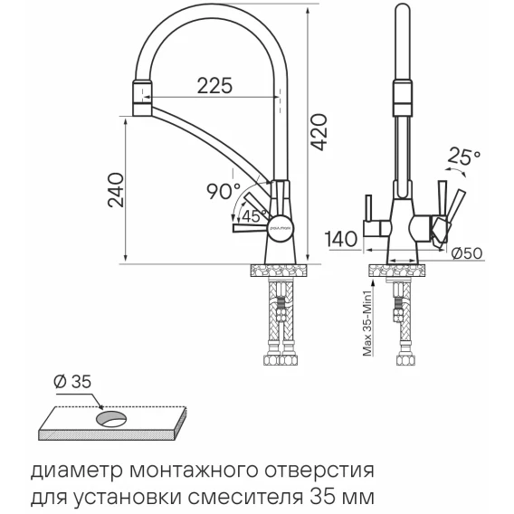 Высота излива 24 см