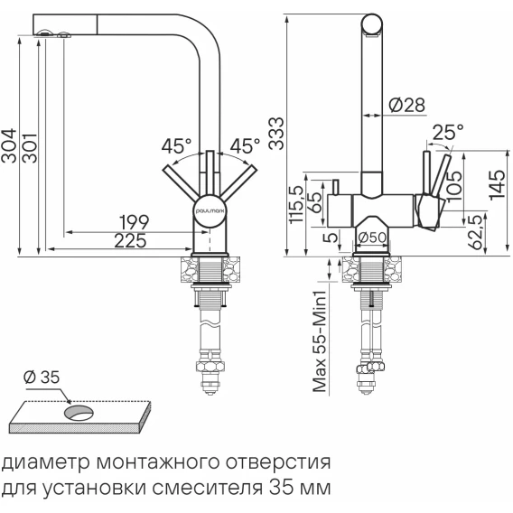 Смеситель для кухни Paulmark Skalen Sk213020-AN с подключением к фильтру, антрацит