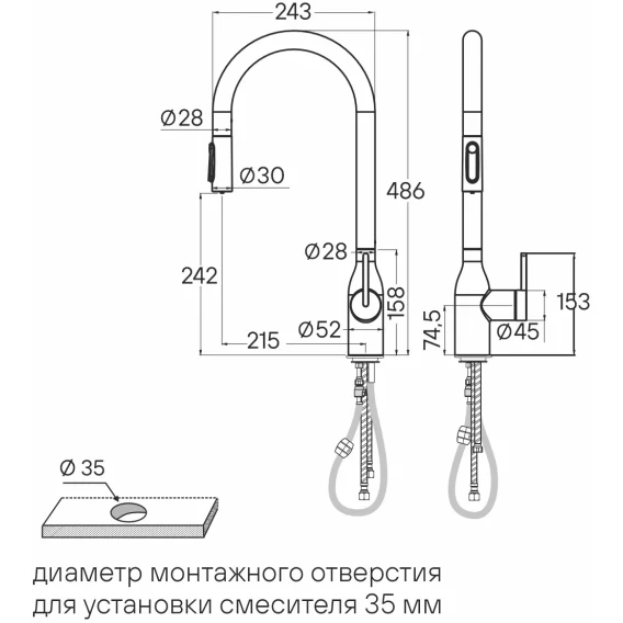 Крепление, Аэратор, Гибкая подводка, Душевой шланг, Душевая лейка