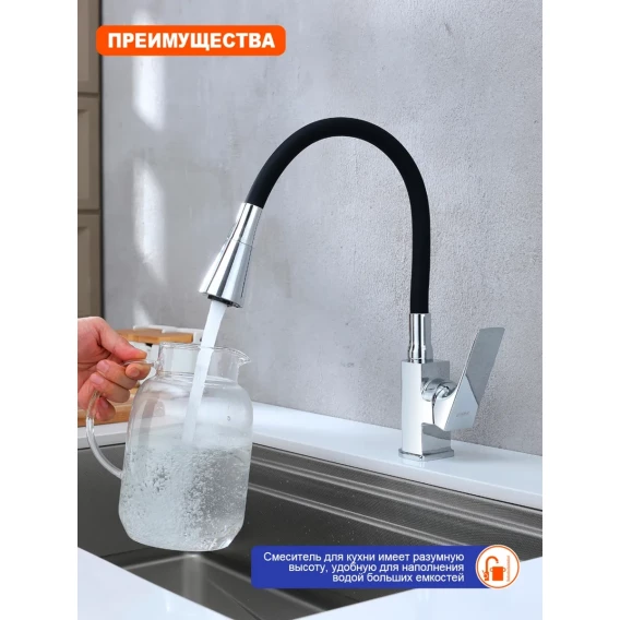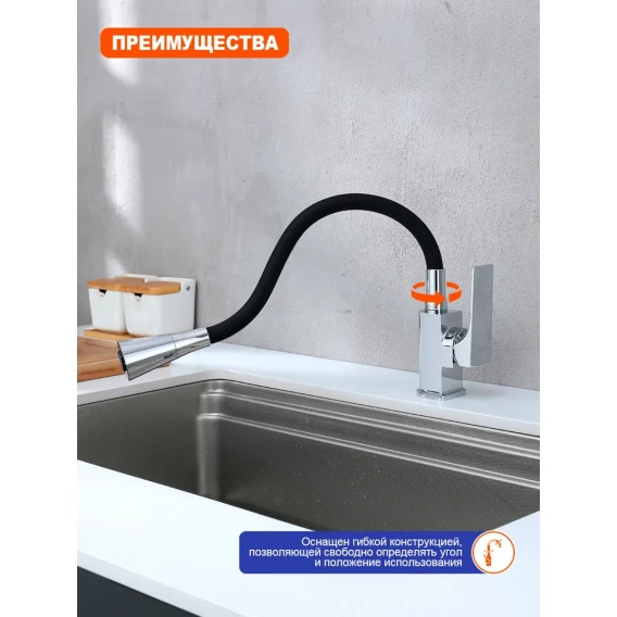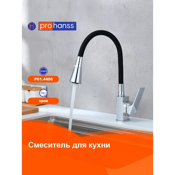 Смеситель для кухни Prohanss P61.4406 с гибким изливом, хром