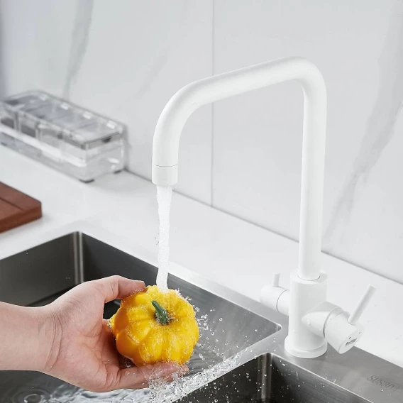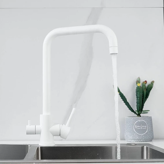 Смеситель для кухни Raffine F118C с подключением к фильтру, белый