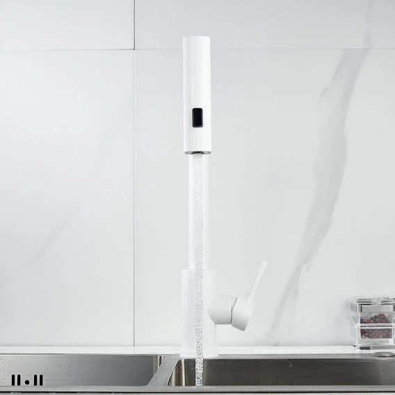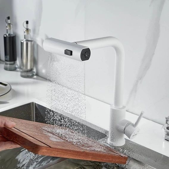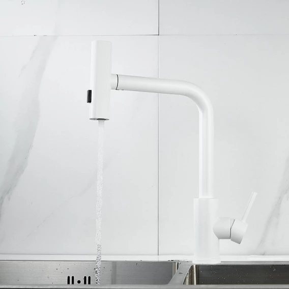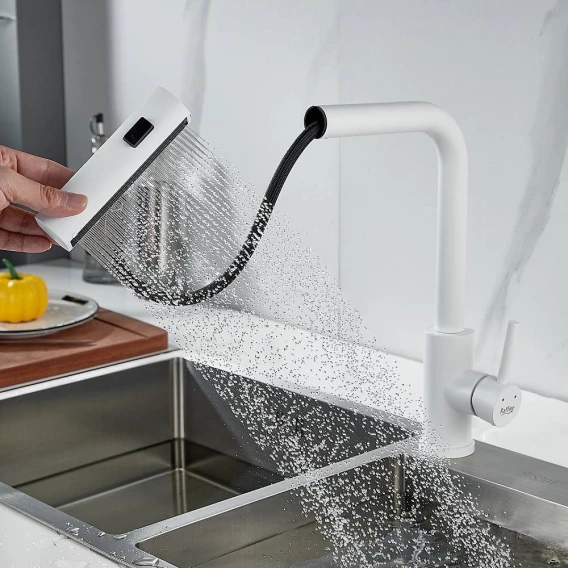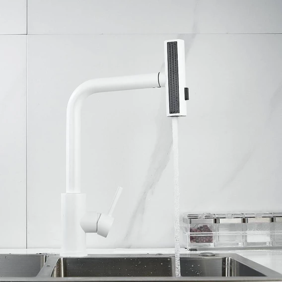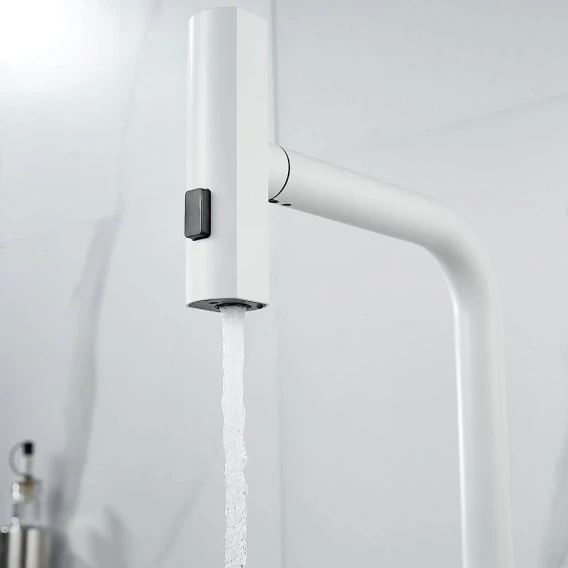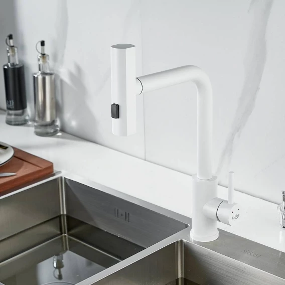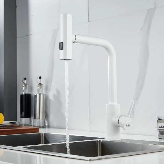 Смеситель для кухни Raffine F203C с выдвижным изливом, белый