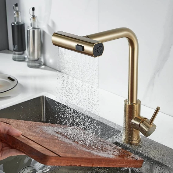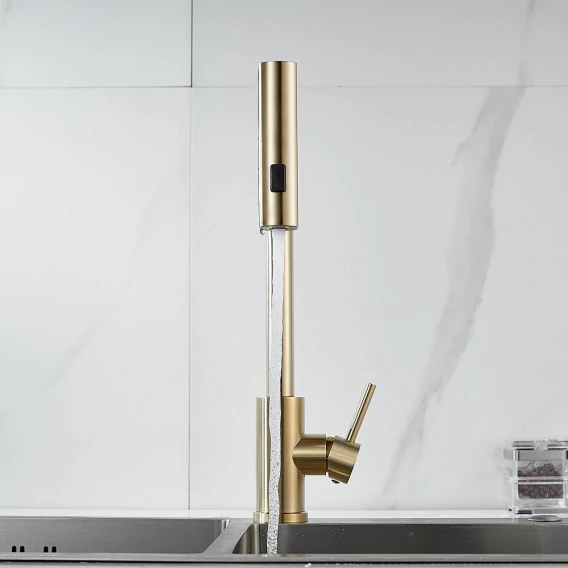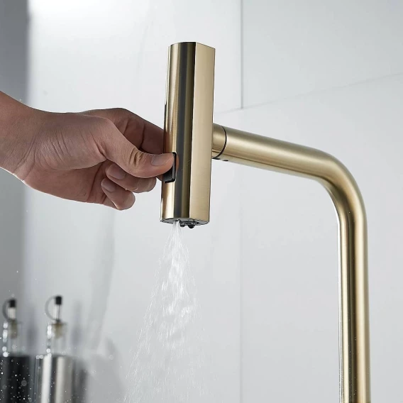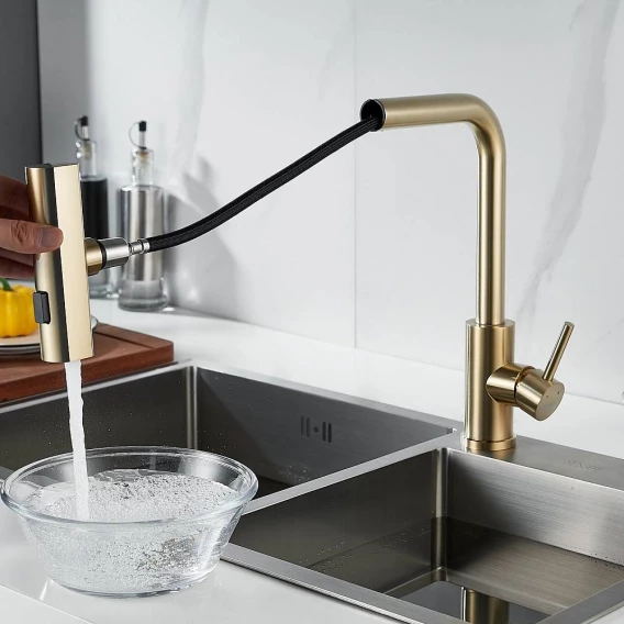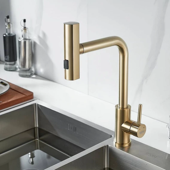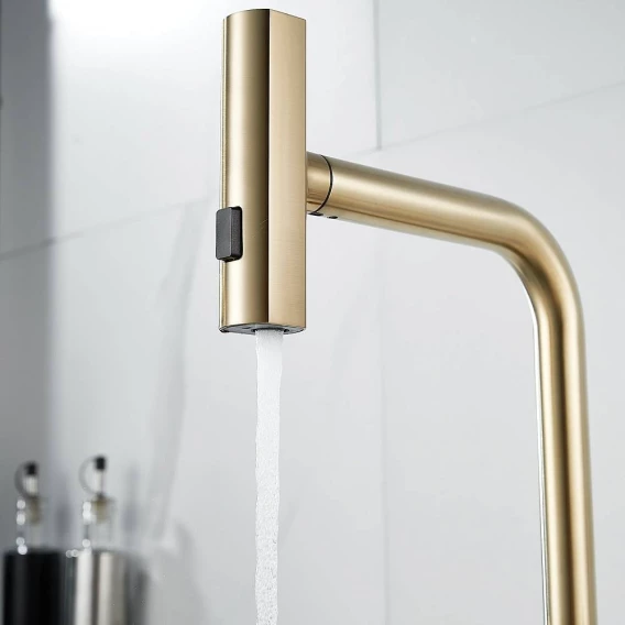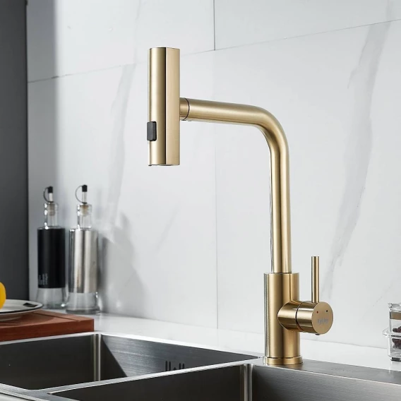 Смеситель для кухни Raffine F203G с выдвижным изливом, золотой матовый