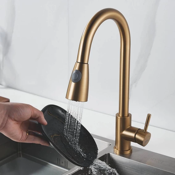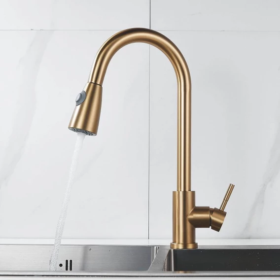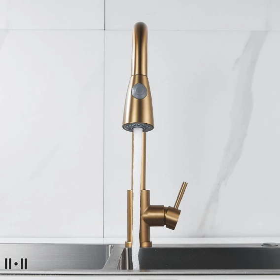Смеситель для кухни Raffine F213G с выдвижным изливом, золотой матовый
