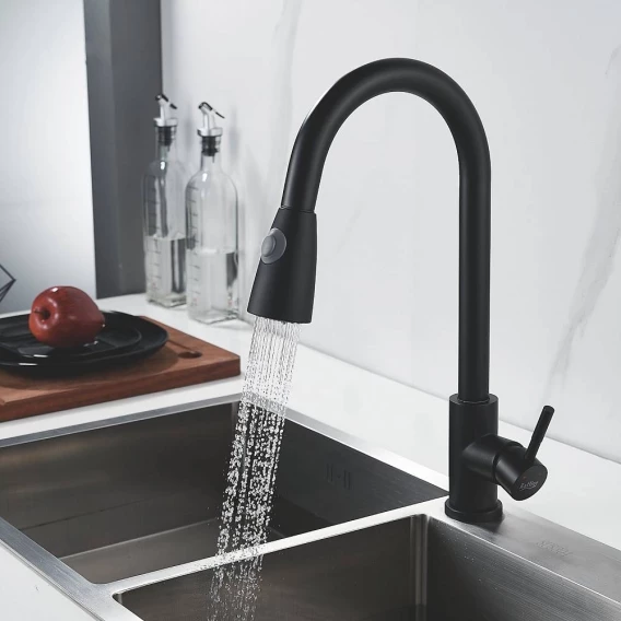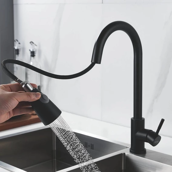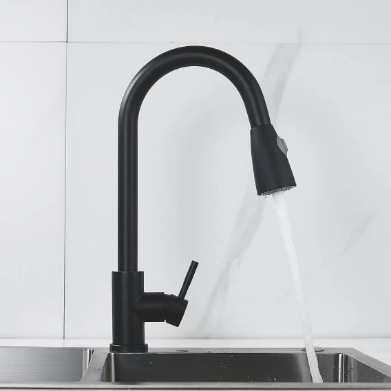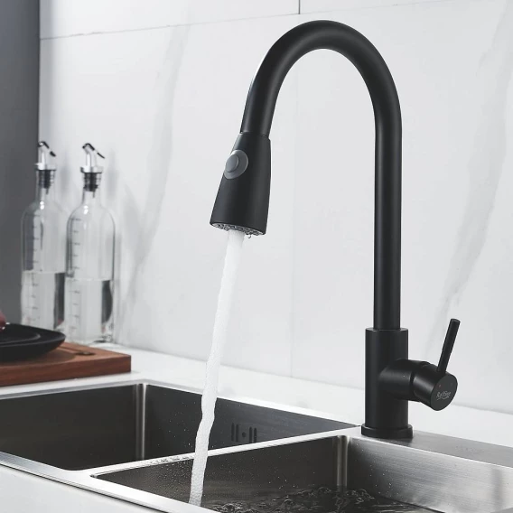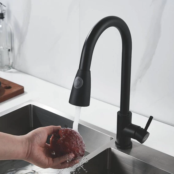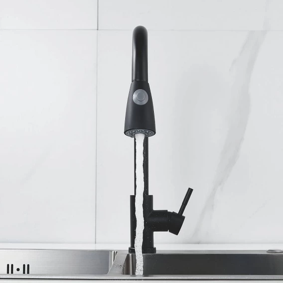 Смеситель для кухни Raffine F213H с выдвижным изливом, черный матовый