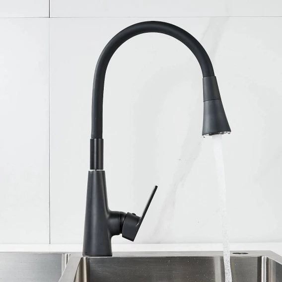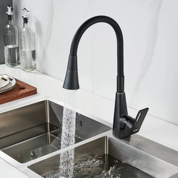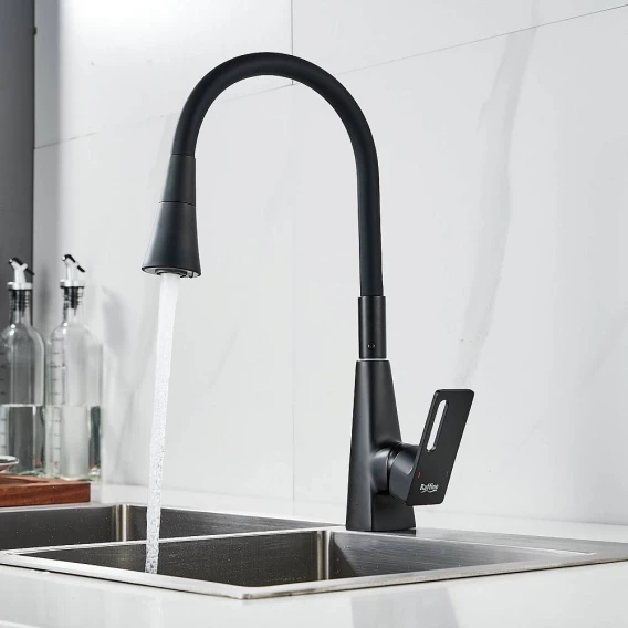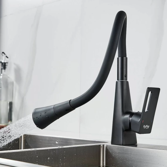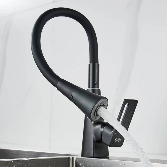 Смеситель для кухни Raffine F313H-3 с гибким изливом, черный матовый