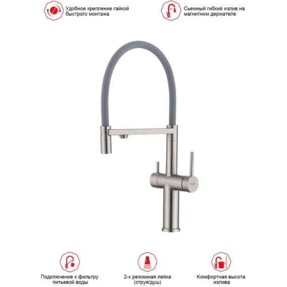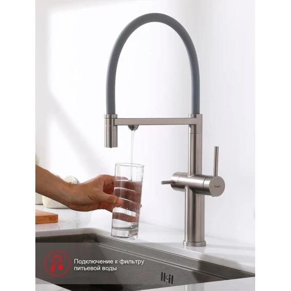 Смеситель для кухни Am.Pm Like F8005722 с подключением к фильтру, черный матовый
