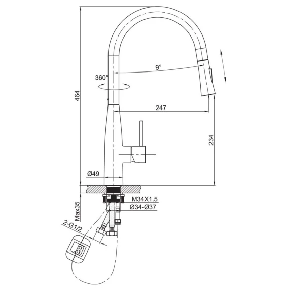 Крепление, Аэратор, Гибкая подводка, Душевой шланг, Душевая лейка