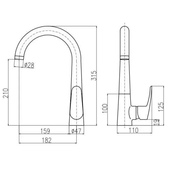 Длина излива 18.2 см