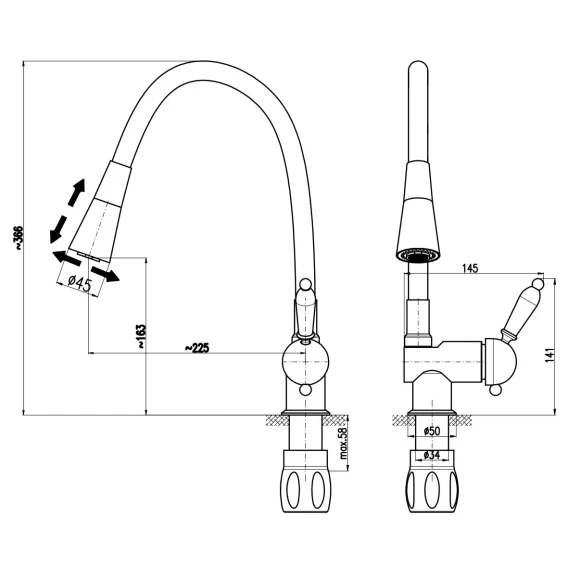 Длина излива 22.5 см