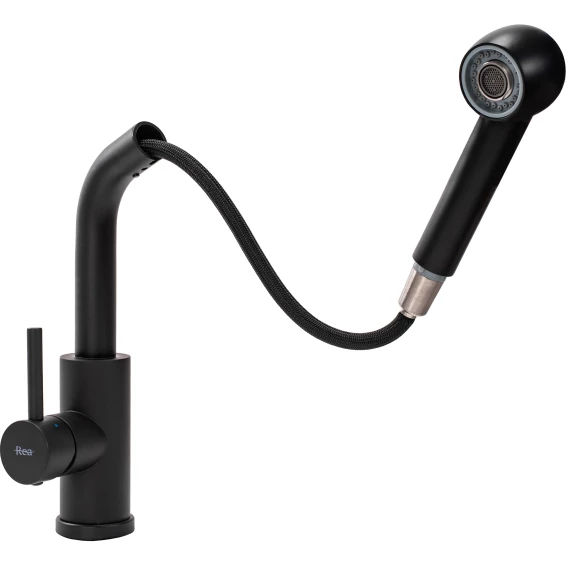Смеситель для кухни Rea Troy REA-B6300 с выдвижным изливом, черный матовый