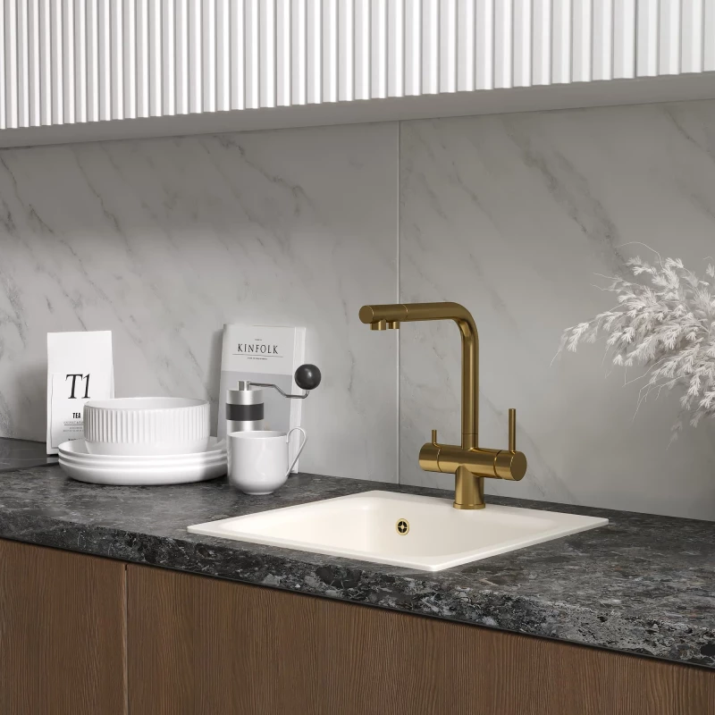 Смеситель для кухни Reflexion Lago RX9903GD с подключением к фильтру, золотой матовый