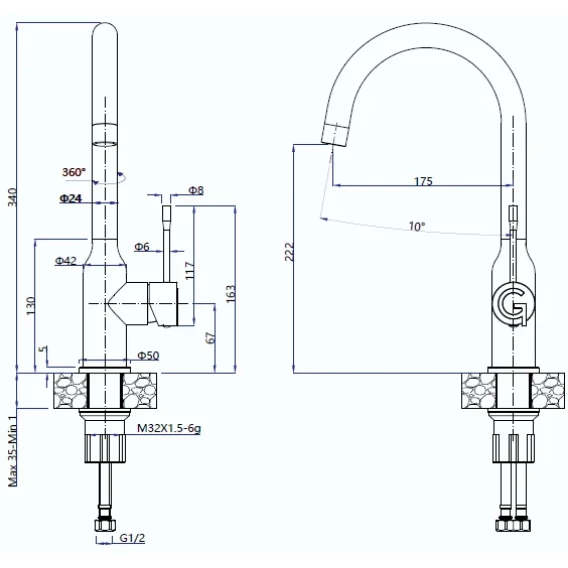 Длина излива 17.5 см