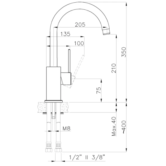 Высота излива 21 см