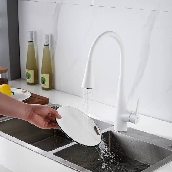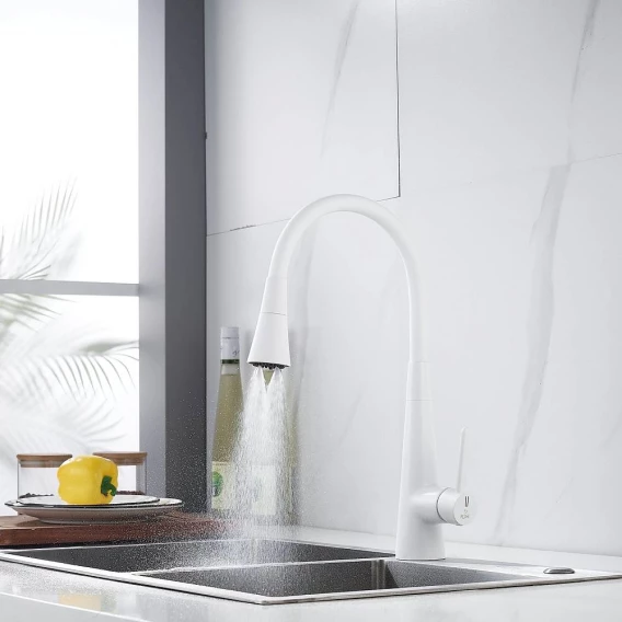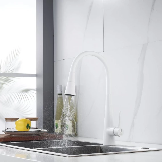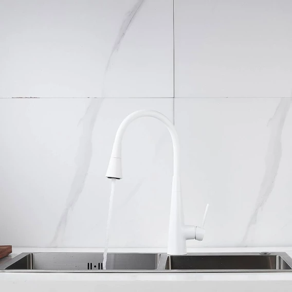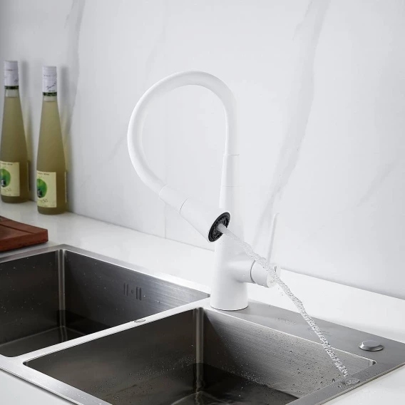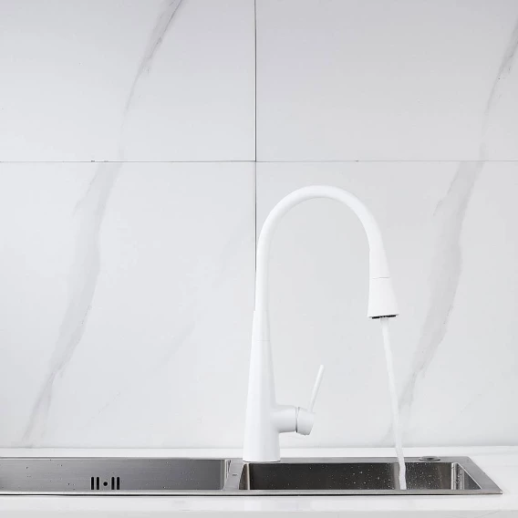 Смеситель для кухни Rose R213C с гибким изливом, белый