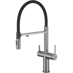 Смеситель для кухни Rose R458T с подключением к фильтру, гибким изливом, оружейная сталь