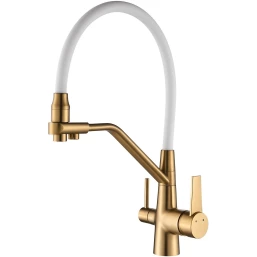 Смеситель для кухни Rose R558G с подключением к фильтру, гибким изливом, золотой матовый