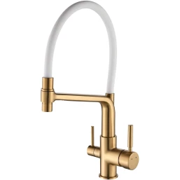 Смеситель для кухни Rose R658G с подключением к фильтру, гибким изливом, золотой матовый