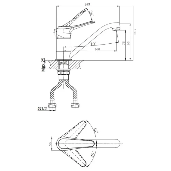 Потолочный кронштейн 400 мм Remer 347N40VO