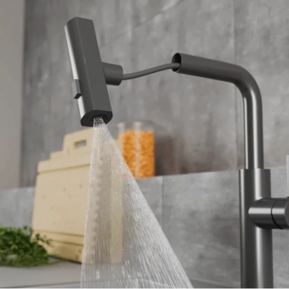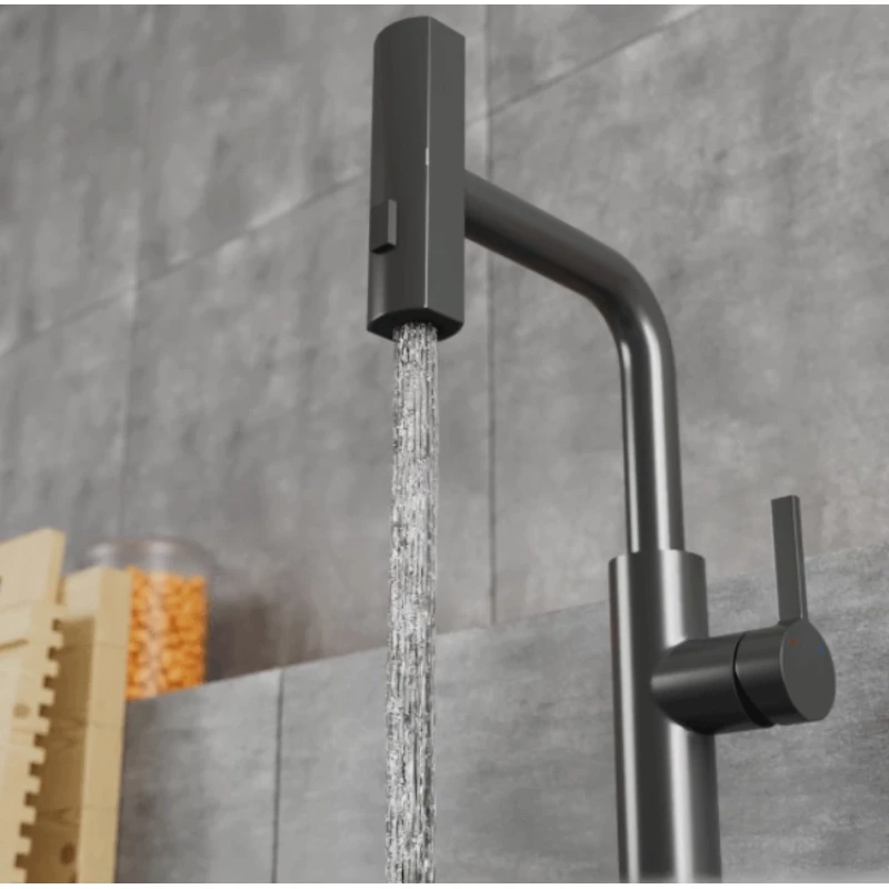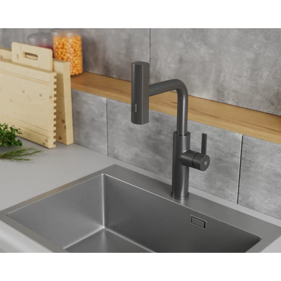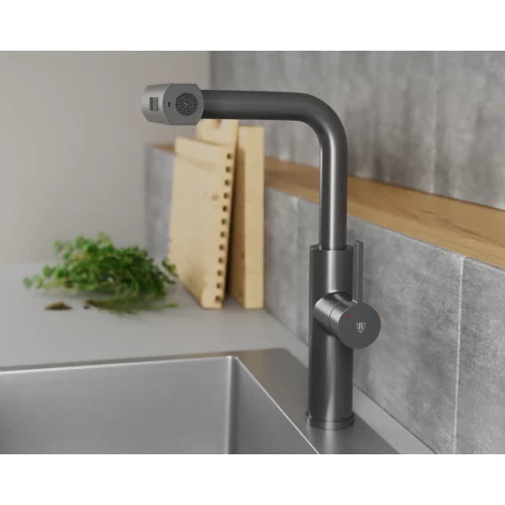 Смеситель для кухни Rush Tinos TI3732-18Grey с выдвижным изливом, серый графит
