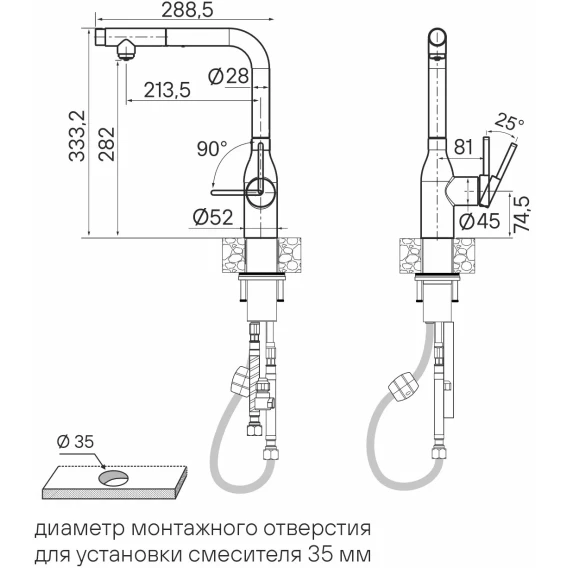 Высота излива 28.2 см