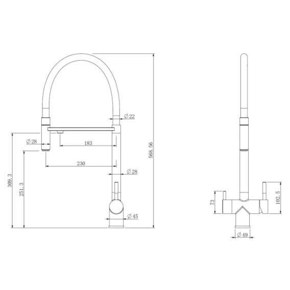 Высота излива 25.13 см