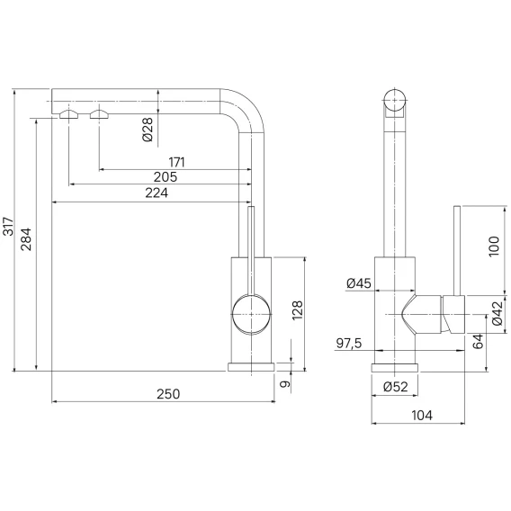 Высота излива 28.4 см