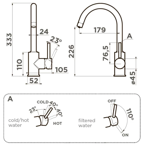 Высота излива 22.6 см