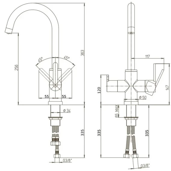 Смеситель для кухни с подключением к фильтру Paini Cox 78PJ6433VL2KM