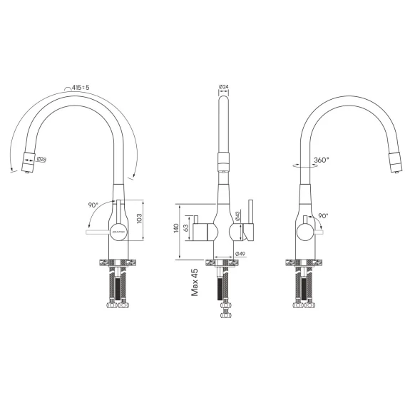 Крепление, Аэратор, Гибкая подводка, Душевая лейка
