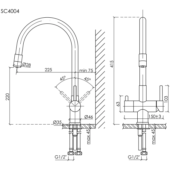 Длина излива 22.5 см